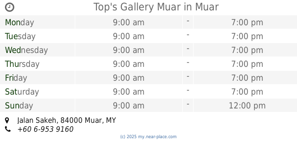 | Sunday | closed | |||||